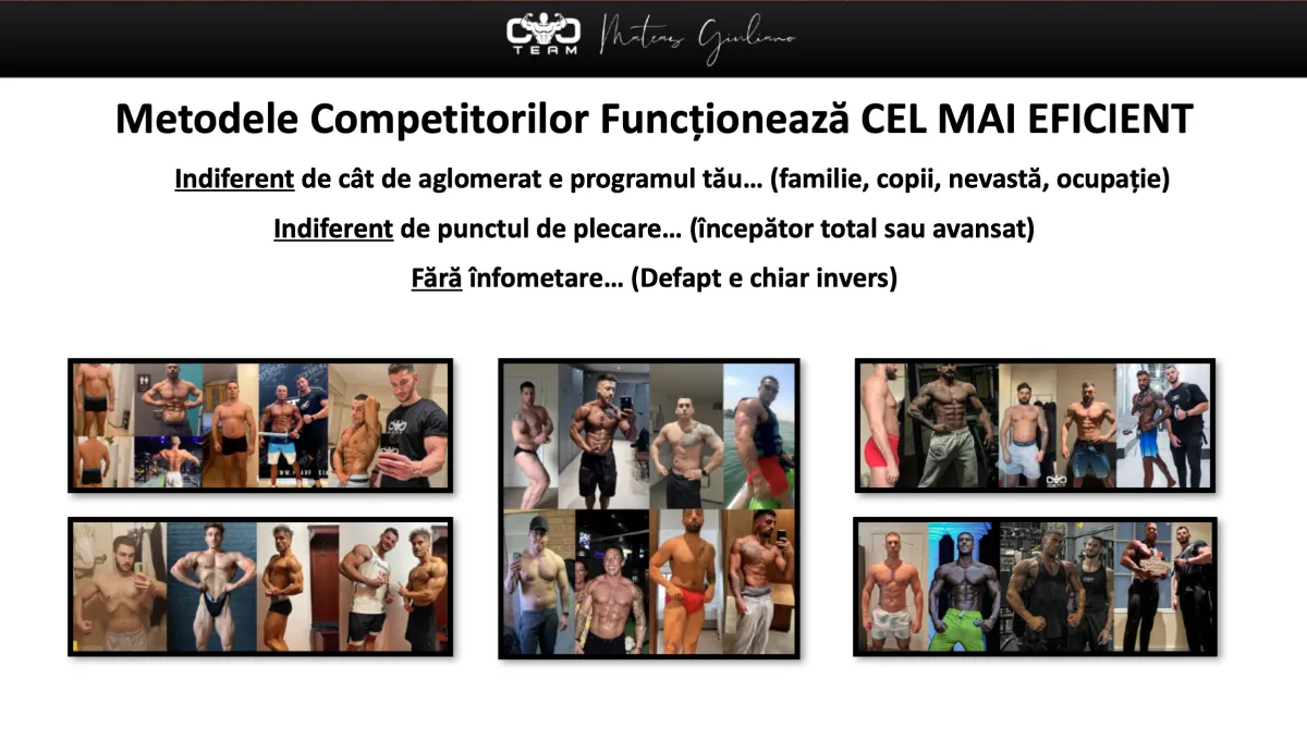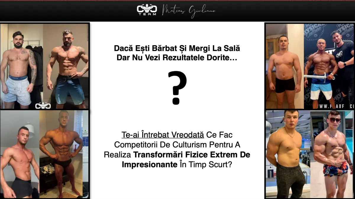 TeamCTC este o companie de coaching și educație digitală dedicată transformării fizice. Testimonialele și studiile de caz prezentate reflectă experiențe reale, dar nu garantează rezultate tipice. Progresul este influențat de disciplină, consistență, aplicare corectă și condiții individuale.